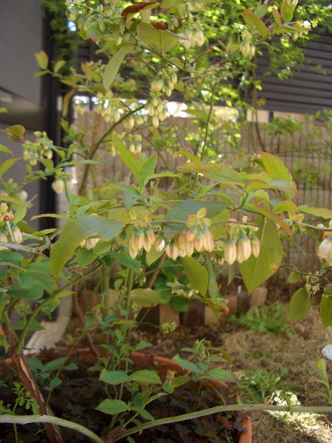 ブルーベリーの木がかわいい花?(実?)をつけている。